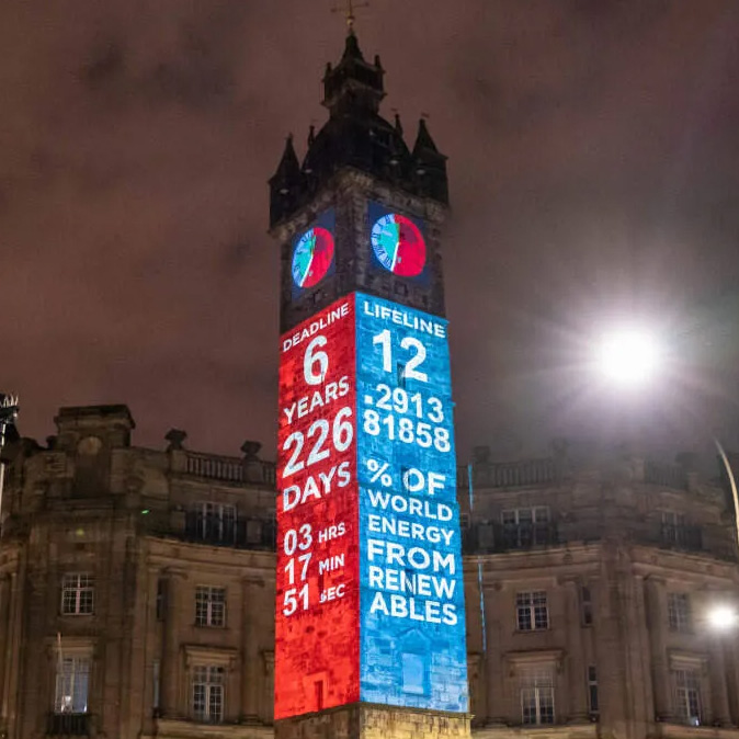 「氣候時鐘」反應人類碳排放的速度,數字依序呈現年數、天數、時、分秒。溫室效應一直以來都是現今環境最大的殺手,我們必須控制全球溫度增加在 1.5 度 C 的範圍以內,才有機會避免災難發生,不然屆時將面臨過去只在電影裡出現的乾旱、洪水、暴風或飢荒等自然災難。